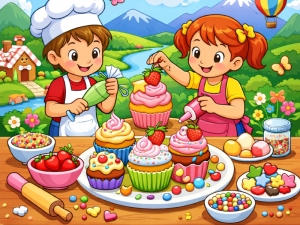 De kinderen starten gezellig aan tafel waar ze hun eigen plak cake mogen versieren met slagroom, sprinkles, snoepjes en andere lekkere toppings. Iedereen maakt zijn eigen kleurrijke creatie – en natuurlijk mag die daarna lekker worden opgegeten.